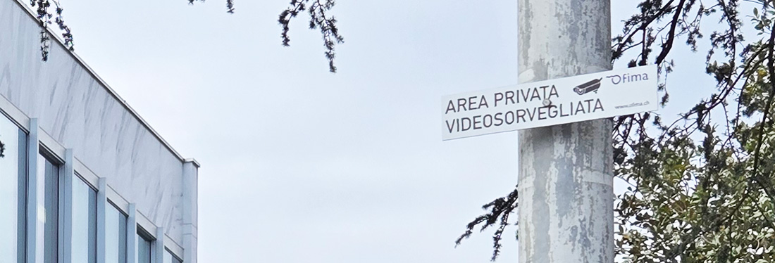 Ofima (officine della Maggia), Seganletica "Area videosorvegliata" esterno stabile Locarno
