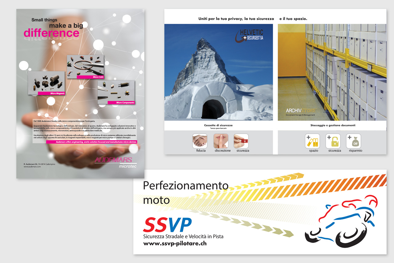 Creiamo e realizziamo ogni sorta di prodotto grafico. Dal volantino pubblicitario A5 al grande manifesto stradale, dalla piccola brochure aziendale al pregiato libro di molte pagine. Dal biglietto da visita all'immagine coordinata completa.